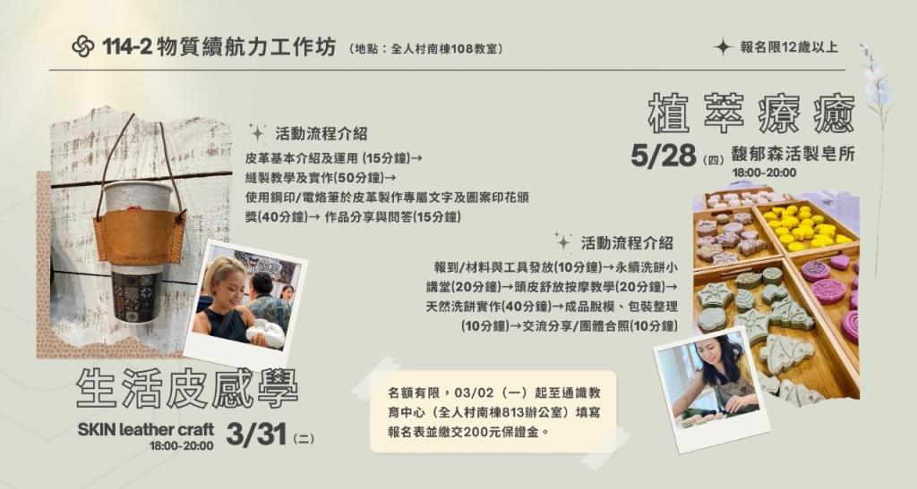 (通識認證)(通識自主學習)(高教深耕)【通識工作坊】03/31(二) 生活皮感學 / SKIN leather craft