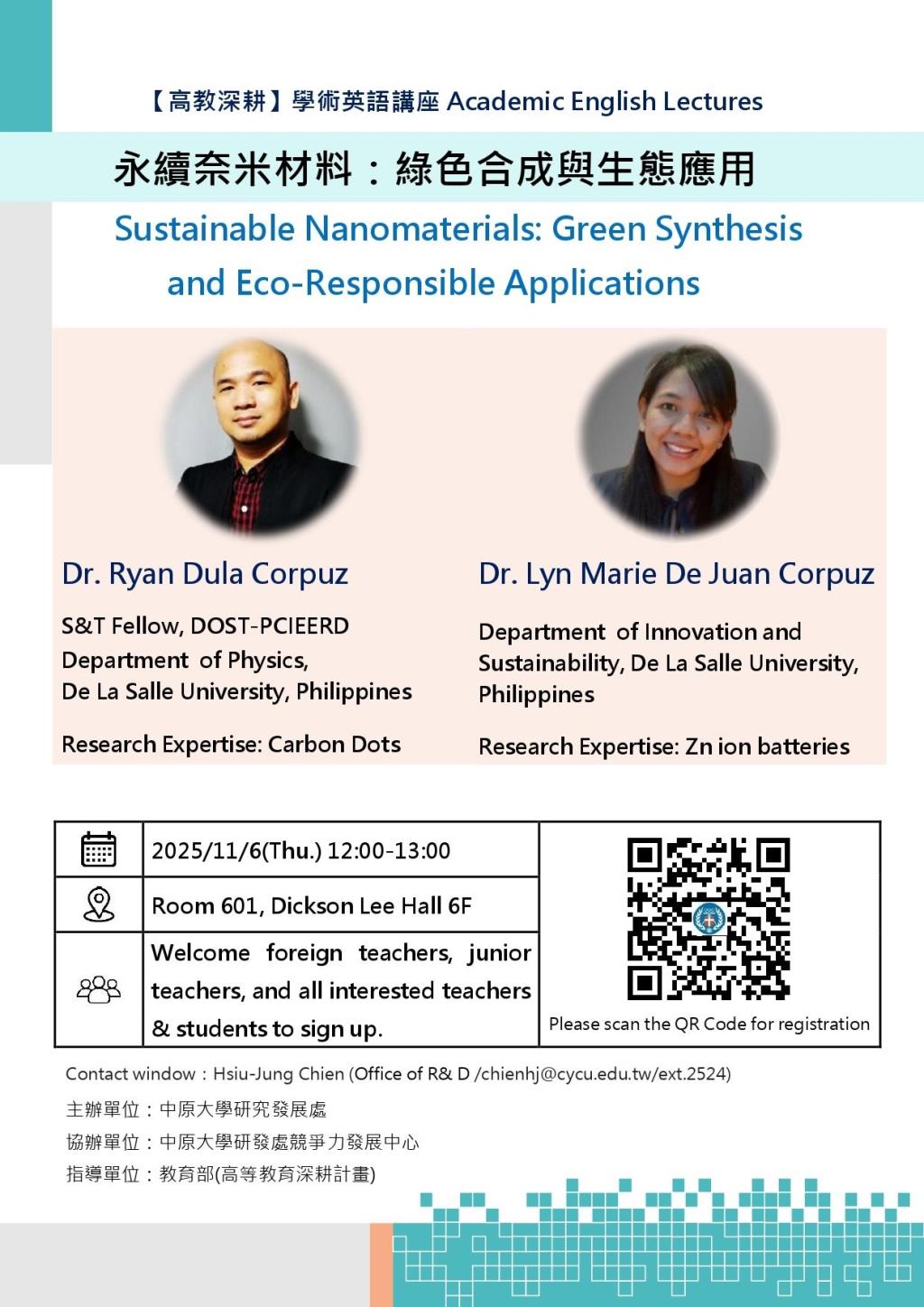 (教師教學研習)(高教深耕) Sustainable Nanomaterials: Green Synthesis and Eco-Responsible Applications