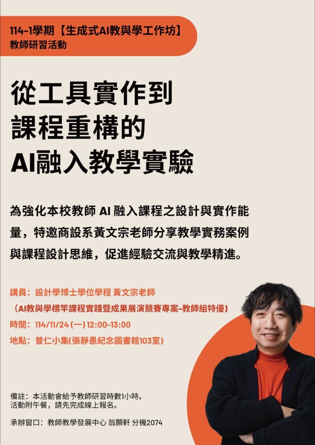 (教師教學研習)(高教深耕) 從工具實作到課程重構的AI融入教學實驗