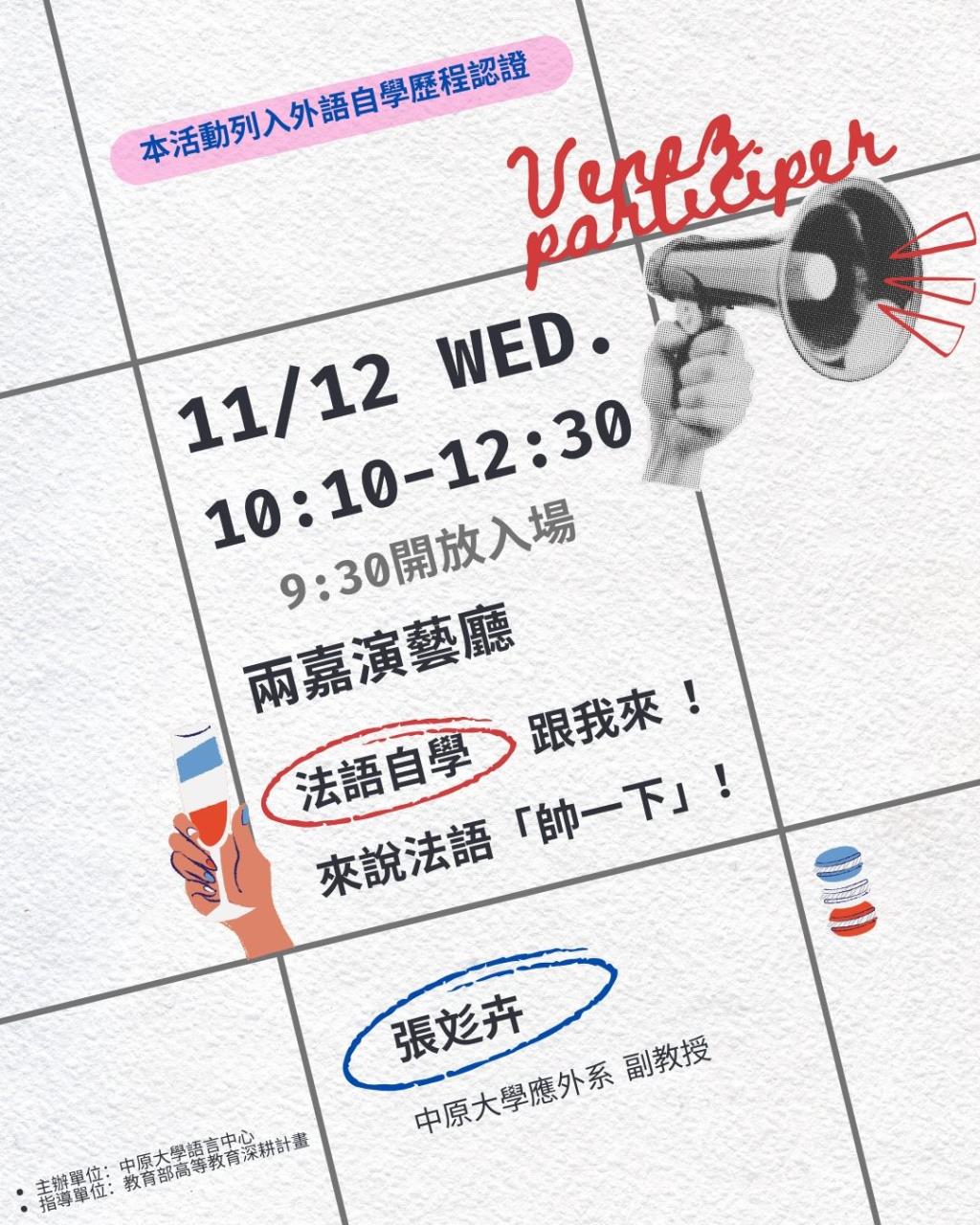 (外語自學)(高教深耕)外語學習講座:法語自學跟我來!來說法語「帥一下」!