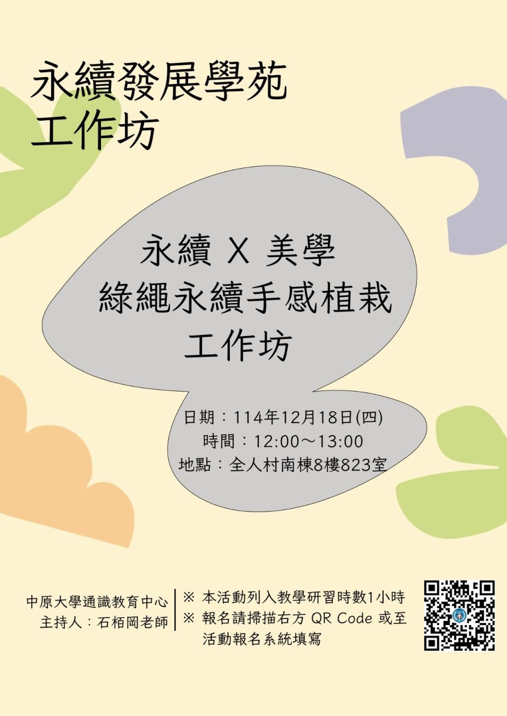 (高教深耕)永續發展學苑工作坊「永續 X 美學 — 綠繩永續手感植栽工作坊」
