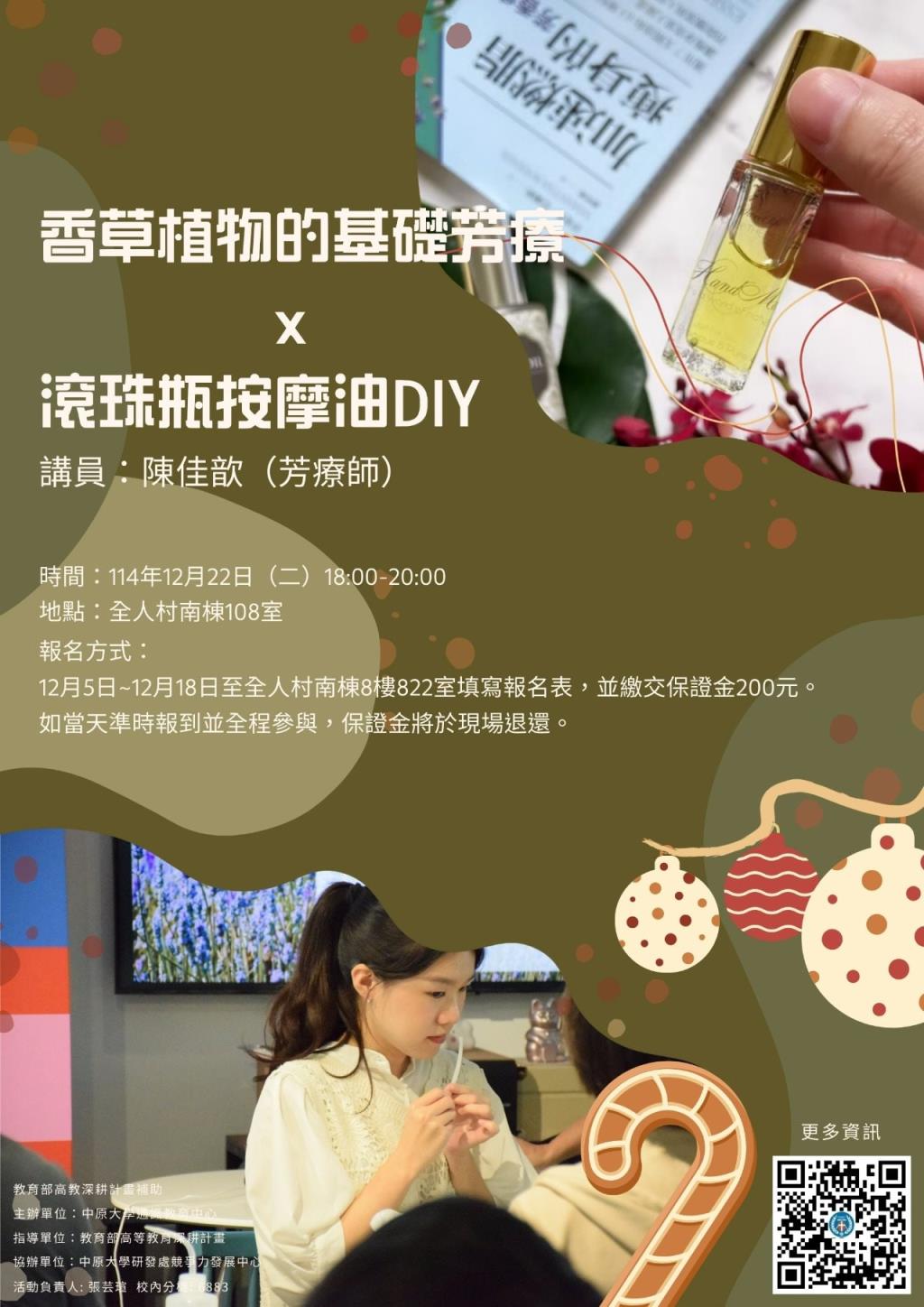 (高教深耕)【高教深耕手作工作坊】12/22|香草植物的基礎芳療x滾珠瓶按摩油DIY