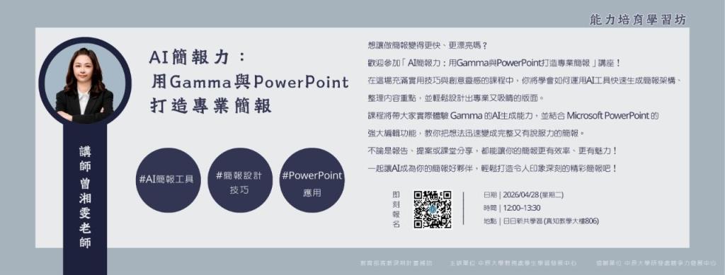 (高教深耕)【能力培育學習坊】04/28 AI簡報力:用Gamma與PowerPoint打造專業簡報