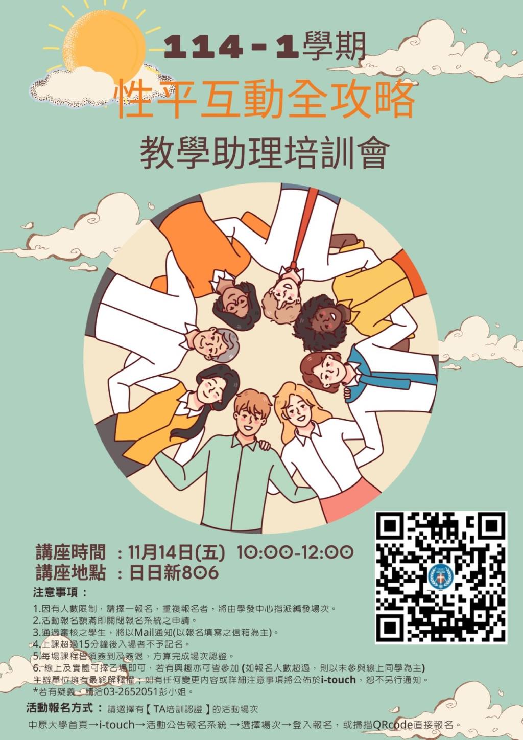 (高教深耕)【TA培訓認證】114-1 TA培訓會: 性平互動全攻略