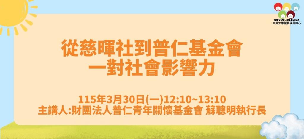 本次榮幸邀請財團法人普仁青年關懷基金會 ...