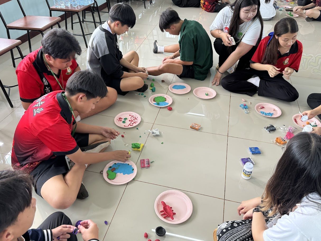 志工團隊將語言學習融入生活情境,以寓教於樂的方式讓孩子自然親近華語。課程內容多元,從「象形文字繪畫」認識中文字的形體之美,到「食物滋味說說看」以中文介紹泰國料理與臺灣小吃,再到以節慶黏土製作與興趣拼圖練習句型等主題,讓課堂充滿笑聲與互動。孩子們踴躍發言、搶答熱烈,志工也在笑語中體會服務的喜悅與成就。