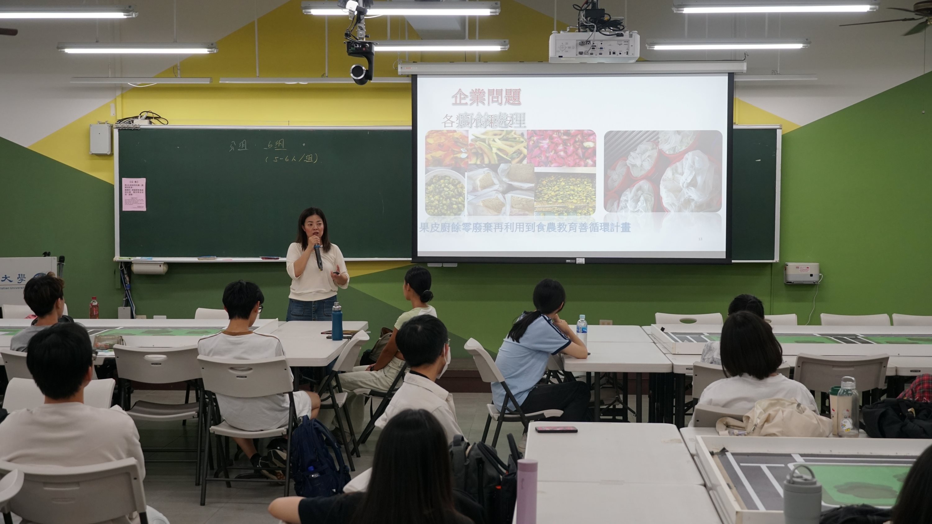 第二場「創業發想與建構」講座由天下國際事業有限公司創辦人黃靜嫻主講。她以自身從學生打工到創立國際冰品品牌的歷程,分享創業從零開始的挑戰與成長。黃靜嫻強調,創業價值不僅在於盈利,更應兼顧社會責任,並以推動水果副產品再利用、研發減碳包裝與差異化製冰技術等案例,說明如何兼顧永續與創新。她鼓勵學生勇於嘗試,將熱情化為行動,並透過跨領域整合拓展國際視野。