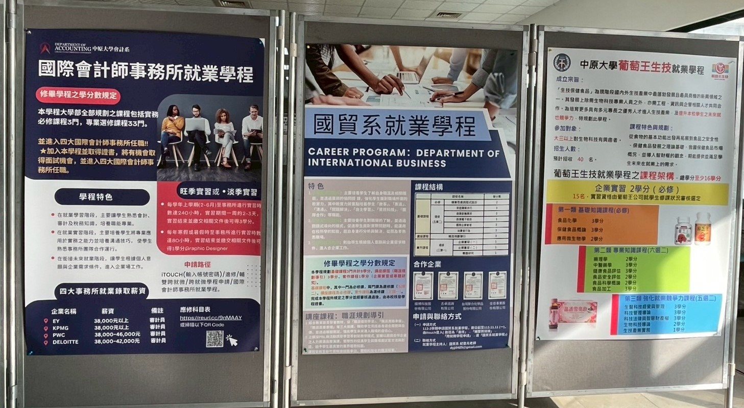為回應職場型態多元化及產業跨域發展趨勢,職涯發展處於114年10月22日至10月31日舉辦「114學年度就業學程博覽會」,整合校內各類就業學程資源,透過靜態展示與師生互動,協助學生深入了解跨領域學習內涵與未來職涯發展方向。