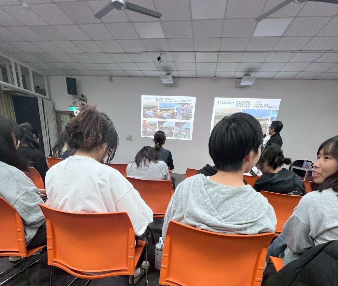 講座首先從水環境系統的基本概念談起,介紹溪流、雨水、回收水與灌溉水等不同類型的水資源,並進一步說明其在都市與郊區水岸空間規劃中的應用與關聯。透過實際案例解析,讓學生理解水環境不僅是自然資源,更是影響城市空間品質與生態環境的重要元素。